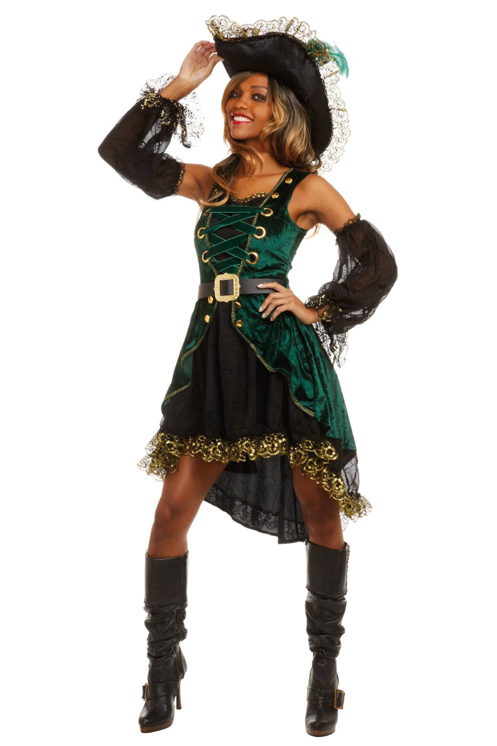 - Pirate Elegance: Step into the world of piracy with elegance in the Emerald Pirate Women’s Costume, perfect for a swashbuckling adventure.