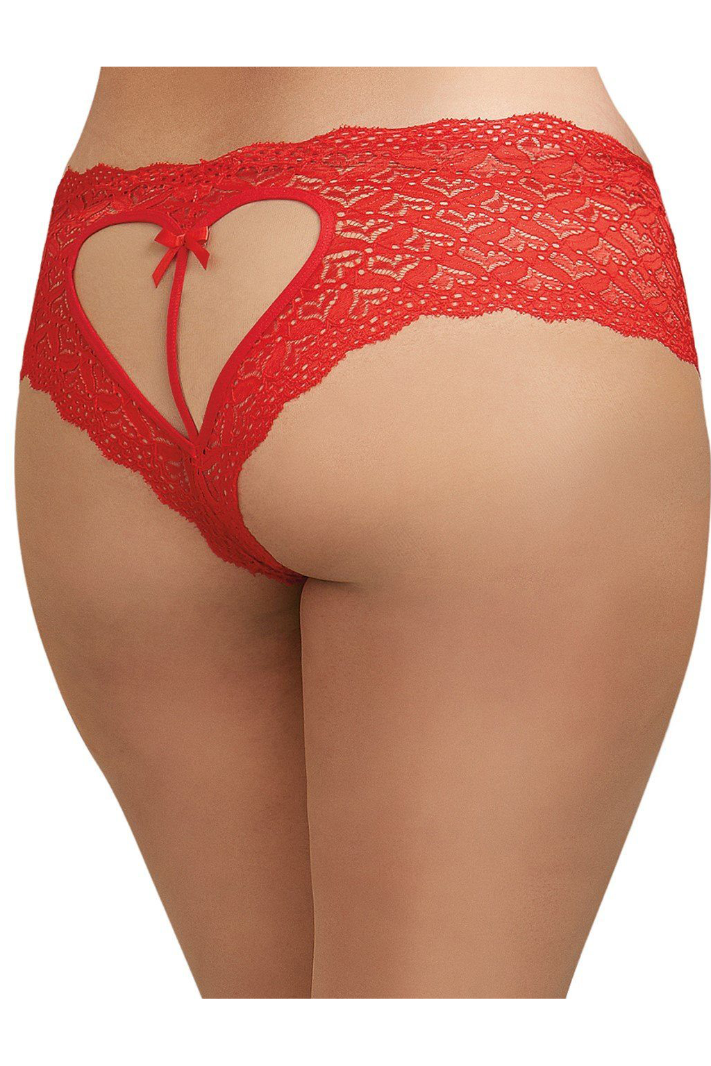 Plus size heart stretch lace panty with open crotch and large cut-out heart detail on the back.