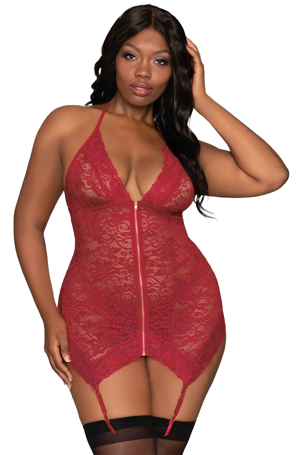Plus size stretch lace garter slip featuring: