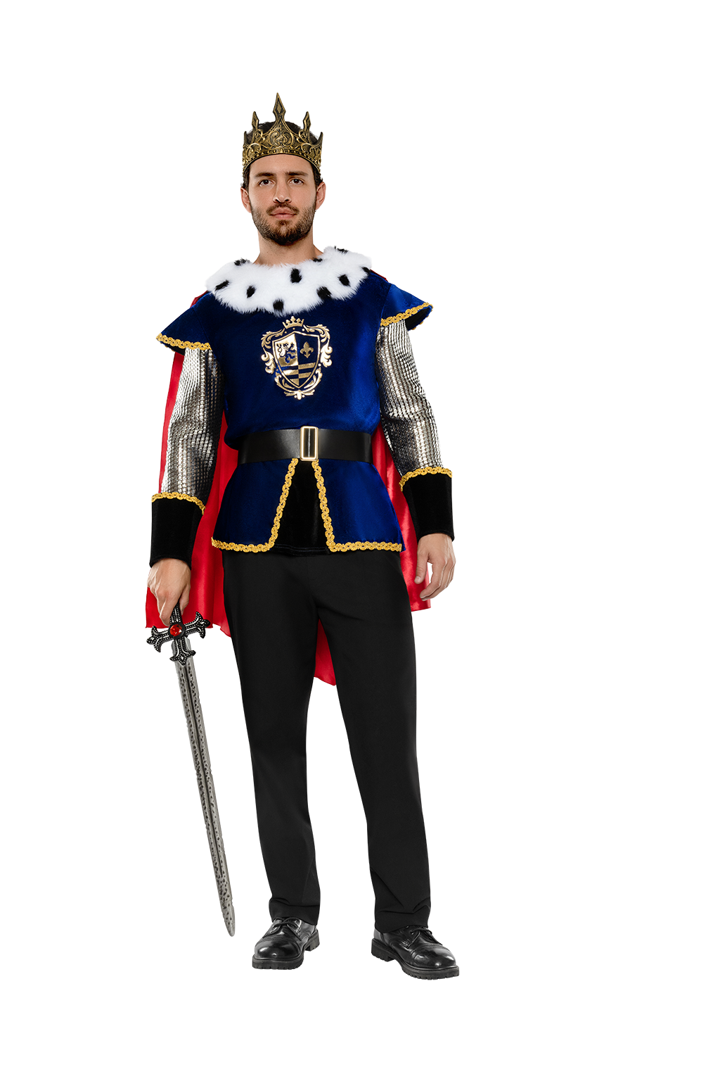 Includes foam crown and pleather belt with metal buckle